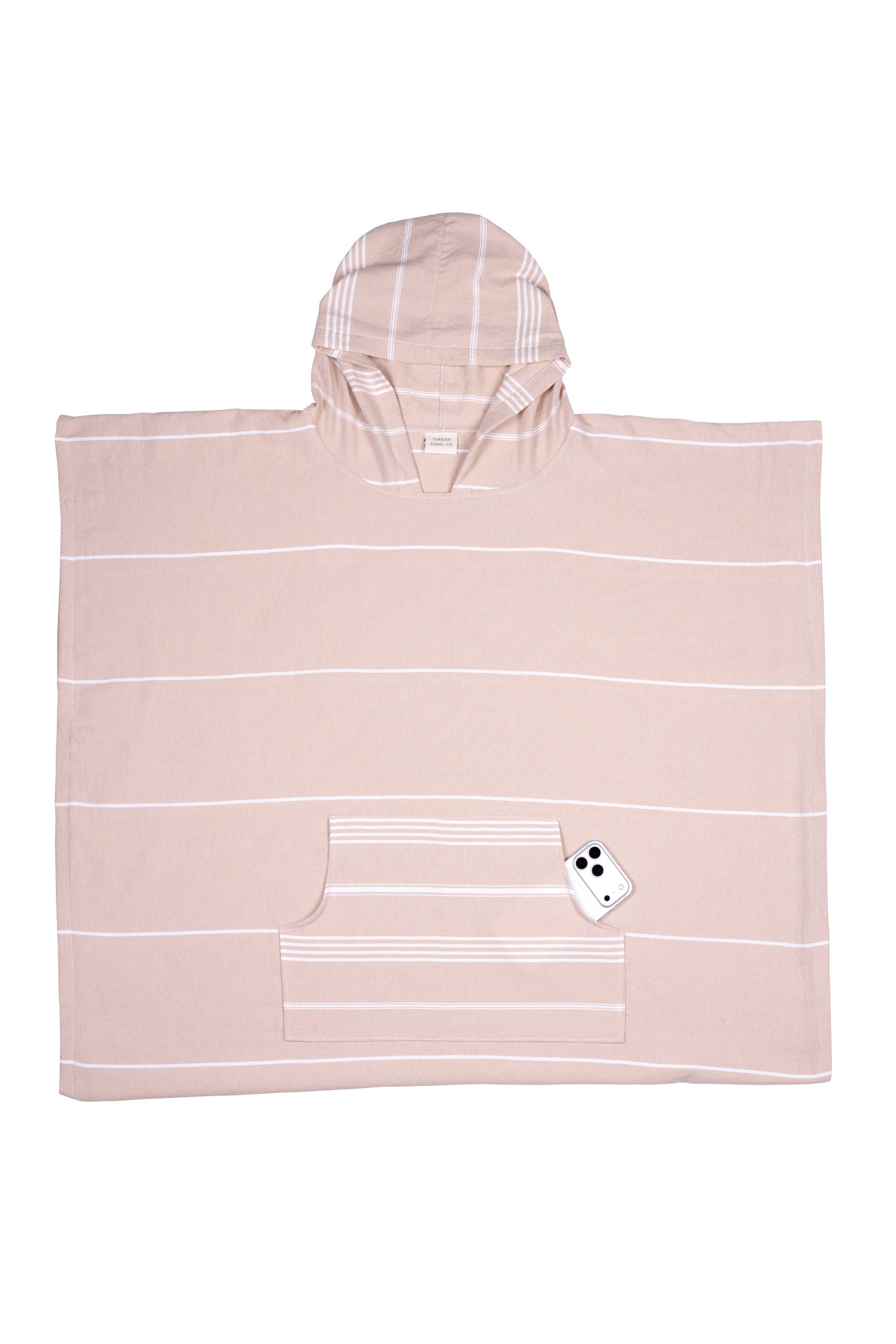 Beige Hooded Turkish Towel Poncho
